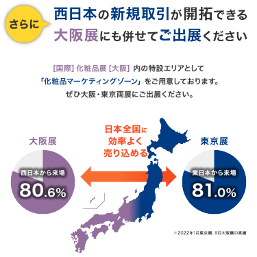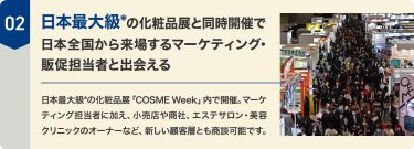 ※「日本最大級」の表記について、化粧品専門の展示会としての出展社数の比較において、日本最大級であることを示しています。