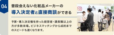日本最大規模の「化粧品展」と同時開催することでサロンオーナーやショップ運営担当と商談が可能。