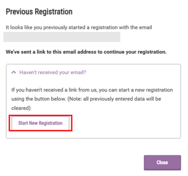Q. I can't find the "Continue Your Registration" email / I want to reset and start from the beginning.