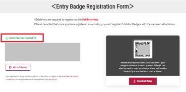 Please note that badge downloads will become available starting 3 weeks prior to the exhibition.