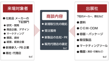 化粧品メーカーや異業種参入企業、新興メーカーの方が多数来場します。