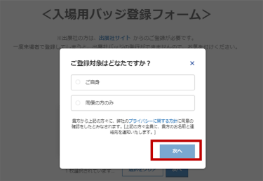ステップ② : ご登録対象を選択し ”次へ" をクリック