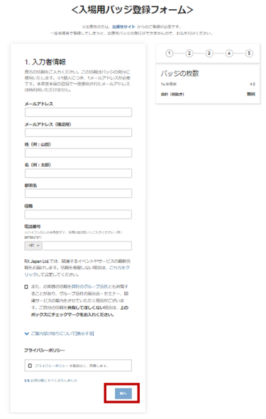 来場登録フォーム入力手順