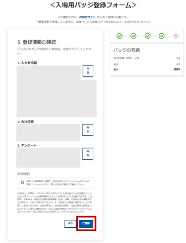 ステップ⑦ : ご登録内容があっているか最後にご確認いただき、利用規約を読みチェックを入れ ”ご登録” をクリック
