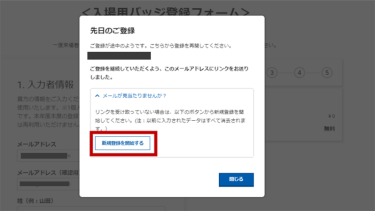 ”新規登録を開始する”をクリックすると再度新規でご登録できます。
