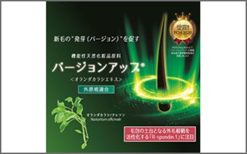 オランダカラシ(クレソン)の葉茎から得られるエキスで、「R-spondin1」と呼ばれる器官の発生や組織再生に関わる因子に注目した発毛原料です。男性だけでなく女性の薄毛や白髪対策にも推奨されます。