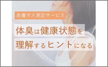 体のにおいとして認知される生体ガスの一種である「皮膚ガス」に含まれる代謝物質を測定いたします。“疲労臭”の原因となるアンモニア、“加齢臭”の原因として知られている2-ノネナール、ジアセチルなど特定のニオイとの関連が知られている物質の測定が可能です。