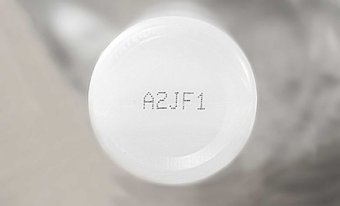 化粧品などのボトル底面に印字と同時に検査します。たった1名で印字と検査、ストックできます(ターンテーブル付き)アルコールに強い有機則非該当インクに対応。