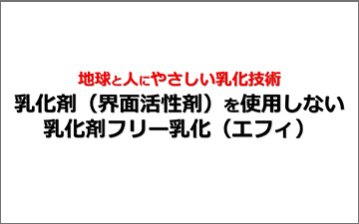 油と水だけで乳化できないと思っていませんか?これまで誰も実現できなかった界⾯活性剤などの乳化剤を⼀切使⽤せず油と⽔のみで乳化する技術(エフィ)を紹介します。