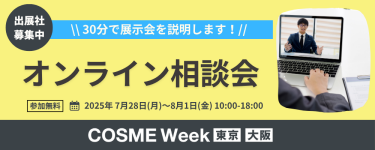 COSME Weekは、化粧品開発展、[国際]化粧品展、化粧品 マーケティング EXPO ※、ヘアケア EXPO ※の4つの専門展で構成。