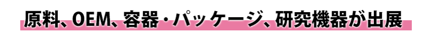 国内外の最新技術や原料、容器・パッケージなど、化粧品開発に関するあらゆる商材が集まります。開発向け製品を直接「見て」「触れて」比較検討したり、オリジナルコスメの企画相談を行うことができます。