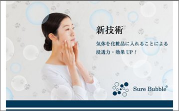 液体中にナノサイズの気体を安定的に配合できる独自技術です。※気泡は非常に小さく微細なため、肉眼では見えず、シュワシュワした見た目や感触はありません。全成分に「酸素」「二酸化炭素」「水素」の表示名称を記載できます。