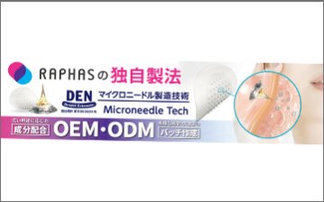 美容成分をニードル状に成形したもの(マイクロニードル)をパッチ状に加工したスキンケア化粧品です。肌に貼ると、美容成分のマイクロニードルが角層内部で溶解します。当社は、マイクロニードルパッチの受託製造サービス(OEM・ODM)を展開しています。