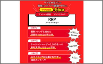 ファクトデータを基にプレスリリースを打つ施策です。1,022万人もの多種多様なモニターによるリアルなアンケート結果に裏付けられたリリースが、あらゆる業界のお客様における商品・サービスの認知度向上と企業ブランディングに貢献します。