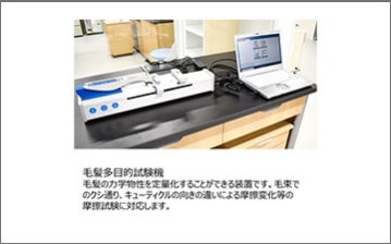 クシ通り試験を行うための毛髪多目的試験機の他、1本の毛髪の引張試験を行うことができる単毛髪力学試験機により、ヘアケア化粧品の有効性や使用感の評価が可能です。